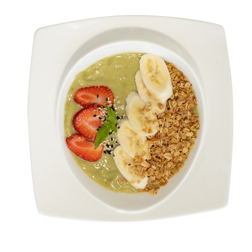 Aguacate, Espirulina Verde, Granola, Guineo, Fresa, Leche Vegetal y Pasta de Nueces a Elegir