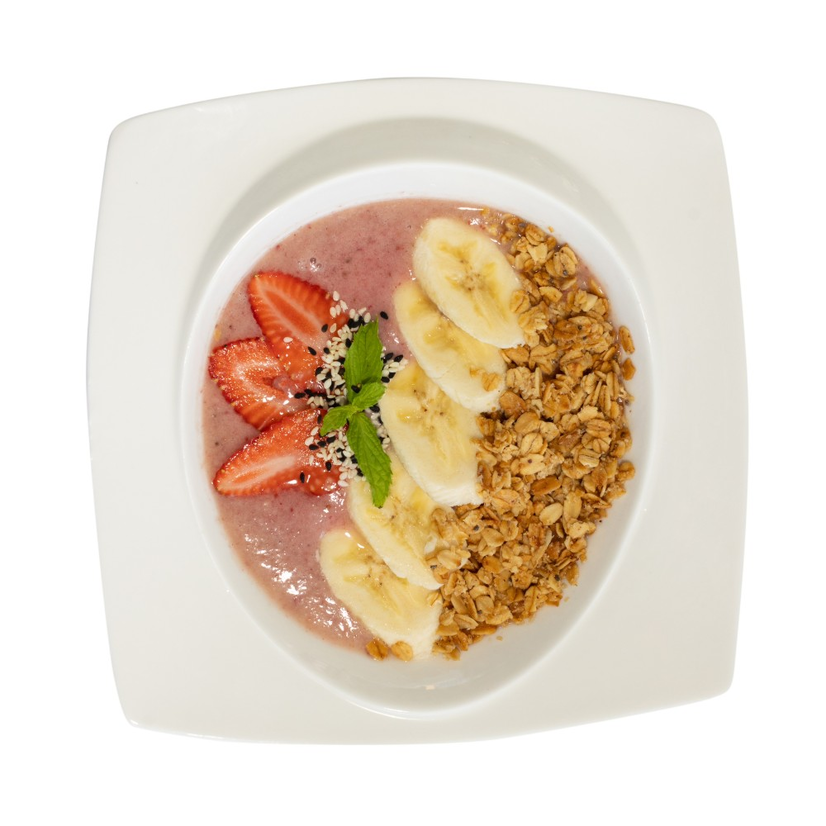 Fresa, Guineo, Granola, Leche Vegetal y Pasta de Nueces a Elegir