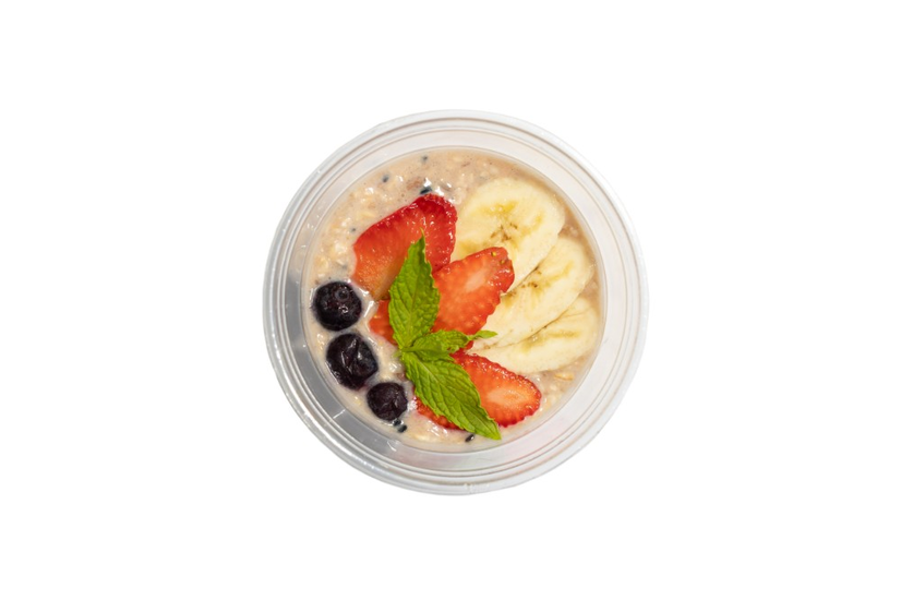 Avena, Mixto de Semillas, Guineo, Fresa, Arándanos y Leche de Cajuil