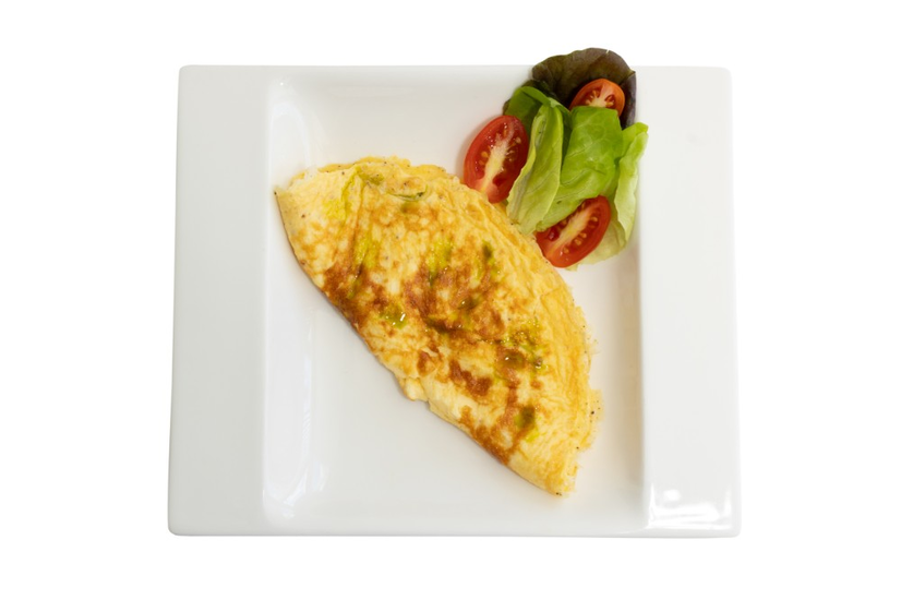 Huevo, Crema de Leche, Tomate, Mixto de Lechuga, Aceite de Oliva y Aceite Verde