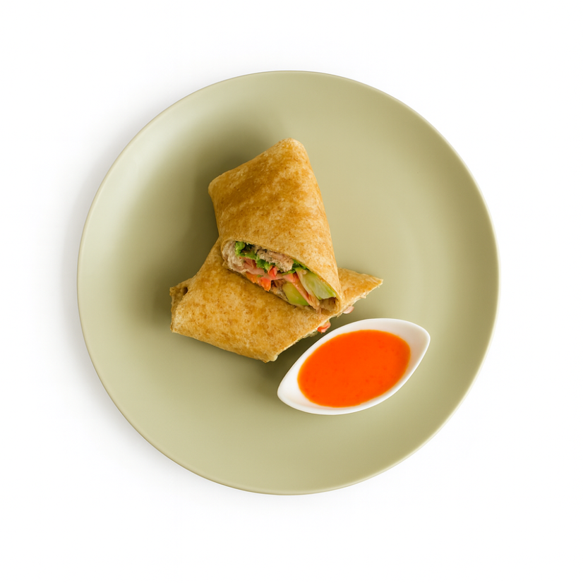 Atun, Mixto de Lechugas, Cebolla, Rucula, Aji, Aguacate, Pepino, Tomate, Zanahoria, Mayonesa Casera y Salsa Aji-Panca